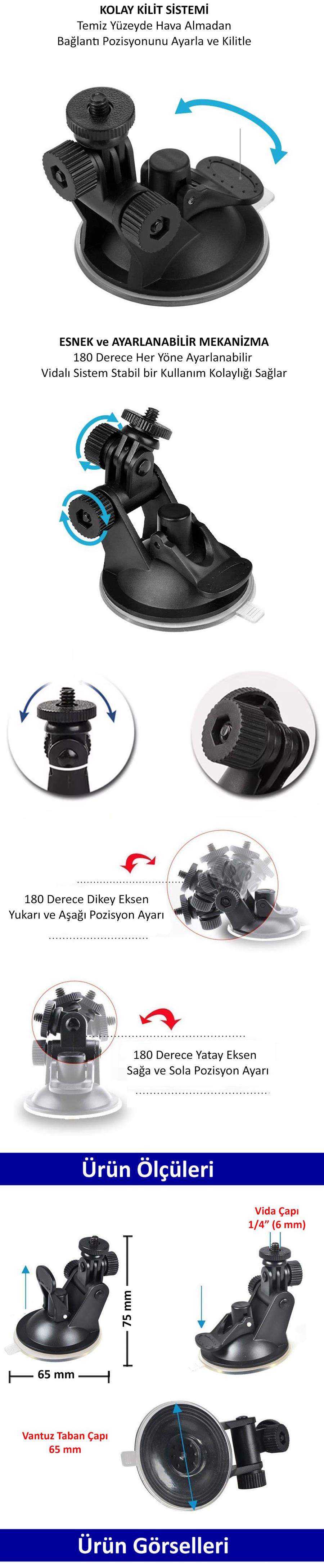 • Tüm Standard 1/4 inç (6 mm) Bağlantı yapısına Sahip Aksiyon Kamera Modelleri İle Uyumludur